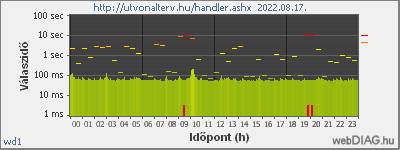 A monitorozás kezdete: 2010.08.29    típusa: publikus    gyakorisága: 1 perc    protokollja: HTTP GET    Tmax: 5000 msec    Timeout: 10000 msec